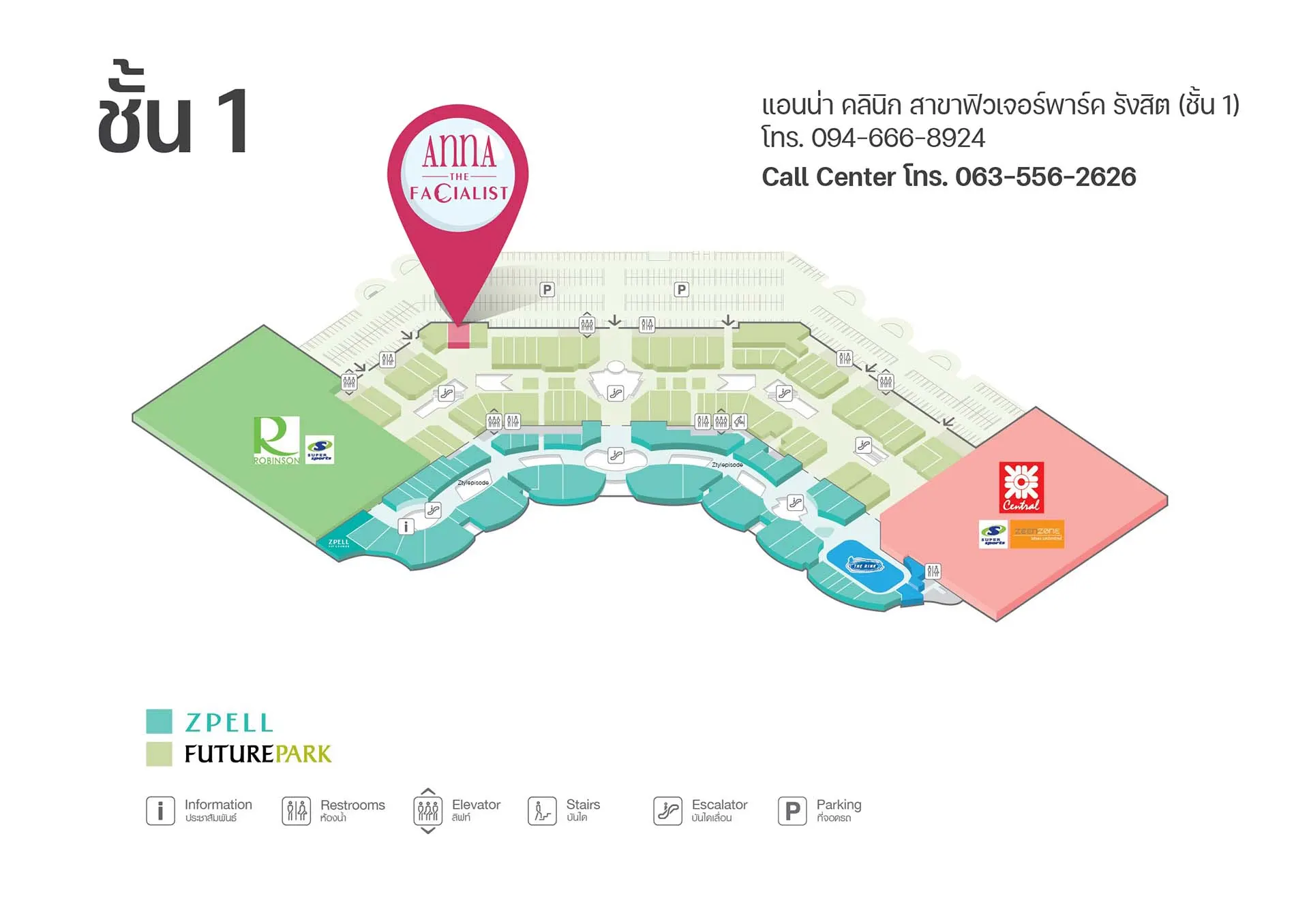 ชั้น 1 ศูนย์การค้าฟิวเจอร์พาร์ครังสิต ถ. พหลโยธิน อำเภอธัญบุรี ปทุมธานี 12130